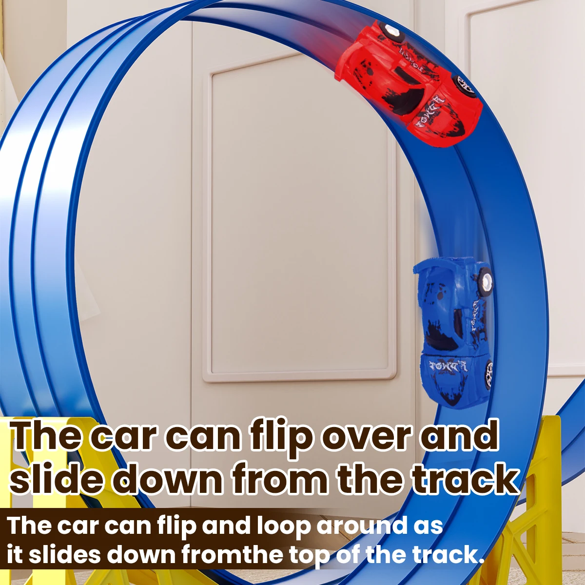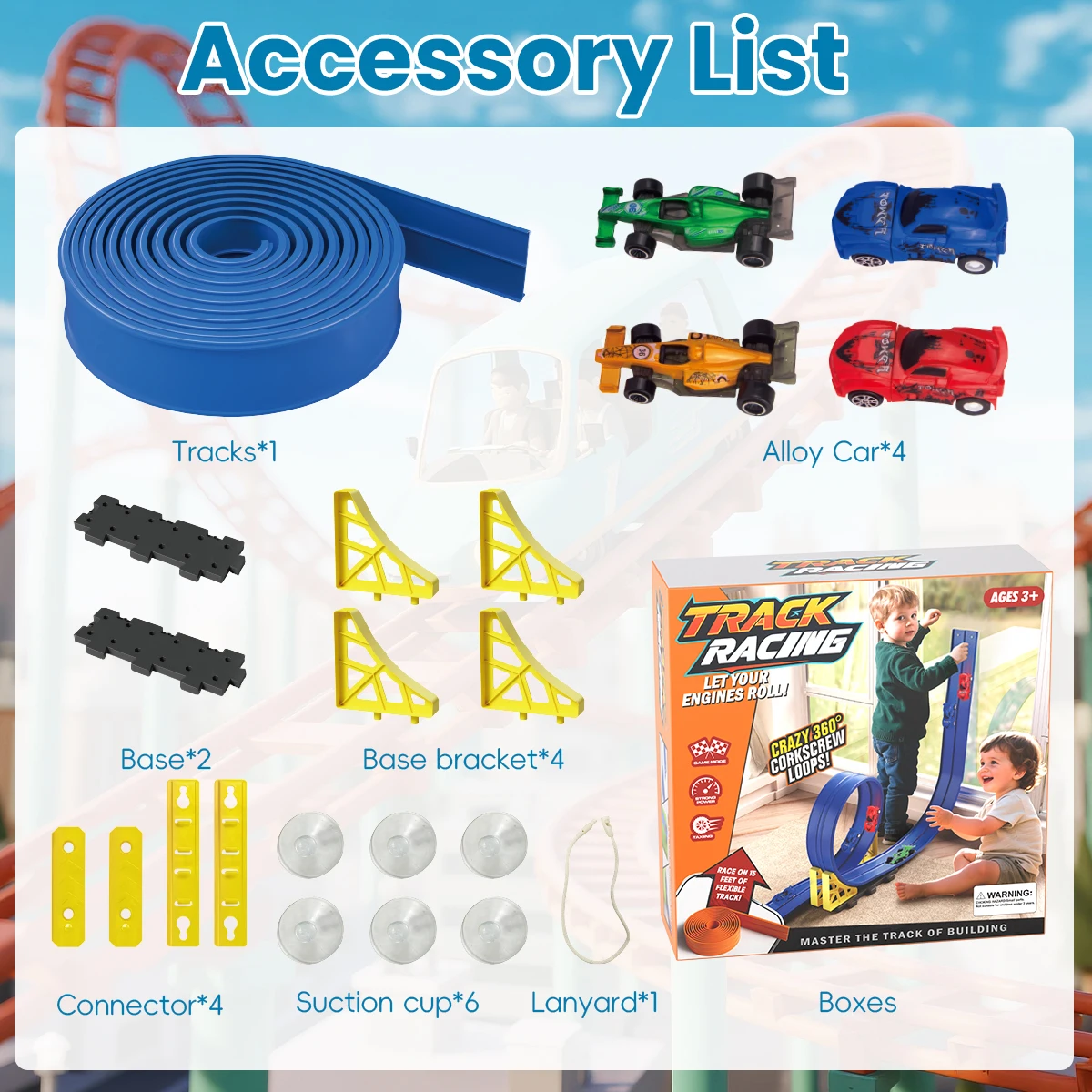 Racerbana med byggbar aluminium-leksaksbil | Pull-back racing med gravitationsramp – Pedagogisk leksak för pojkar & flickor