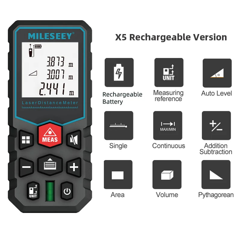 Mileseey Laser Distance Meter Electronic Roulette Laser Digital Tape Rangefinder Trena Metro Laser Range Finder Measuring Tape