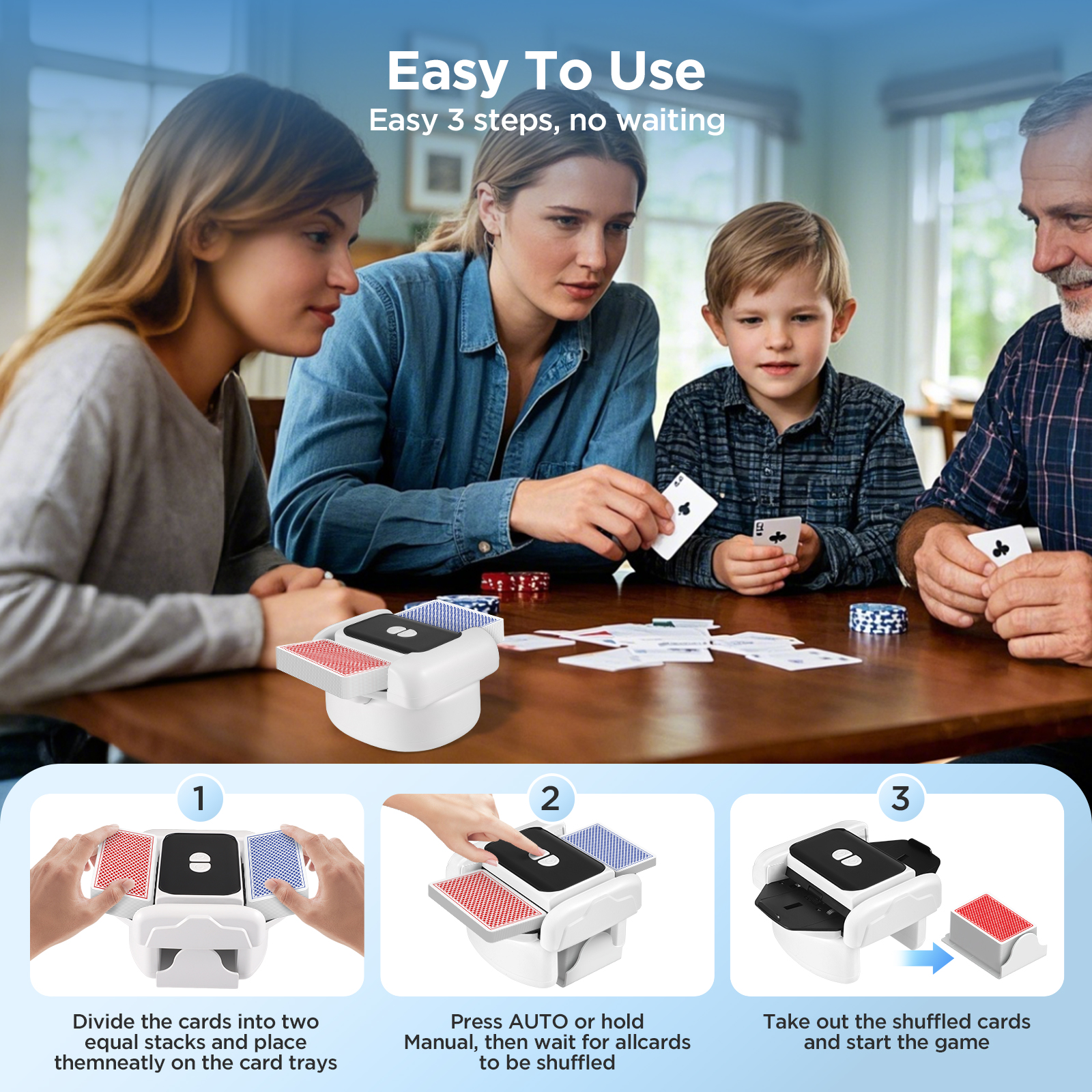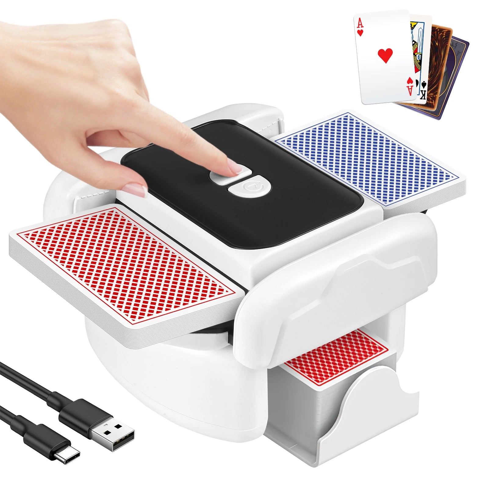 Kortblandare för 2 kortlekar – Uppladdningsbar automatisk för UNO & poker | Snabb, tystgående, jam-säker, kompakt & lätt