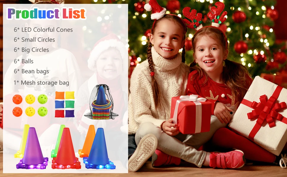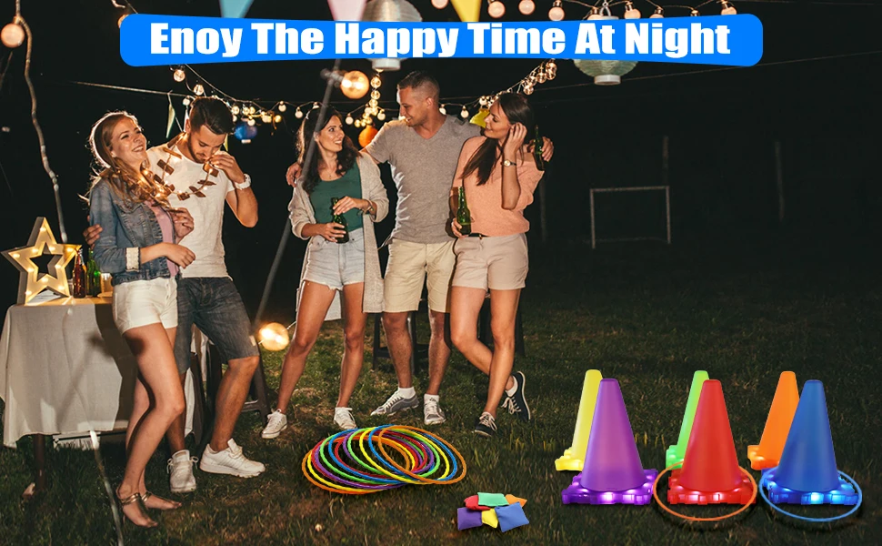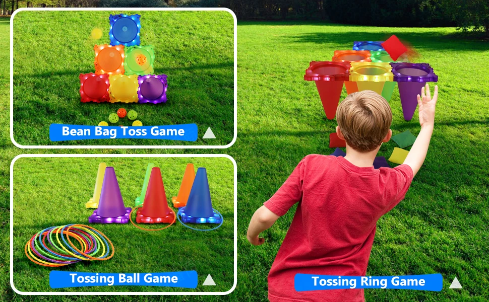 VATOS upplyst kastspel för trädgården – 3-i-1 kastlek med mål | Utomhusspel för kalas, fotbollslek & fest – För barn & vuxna