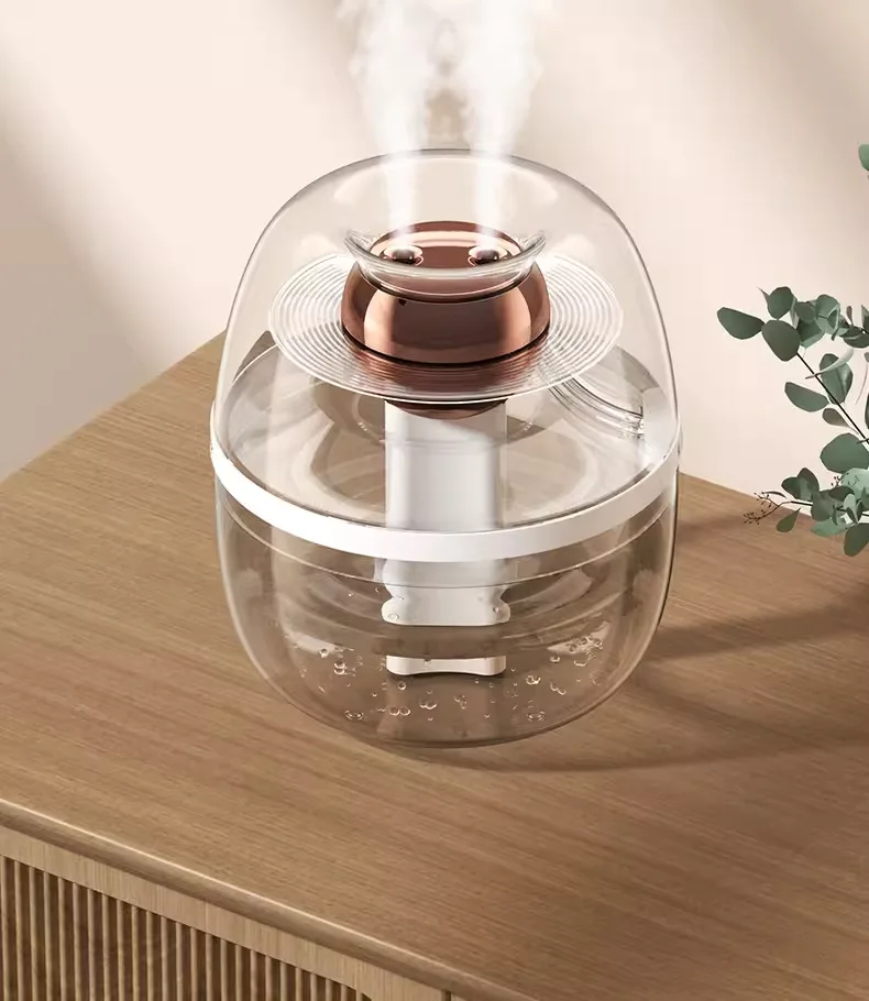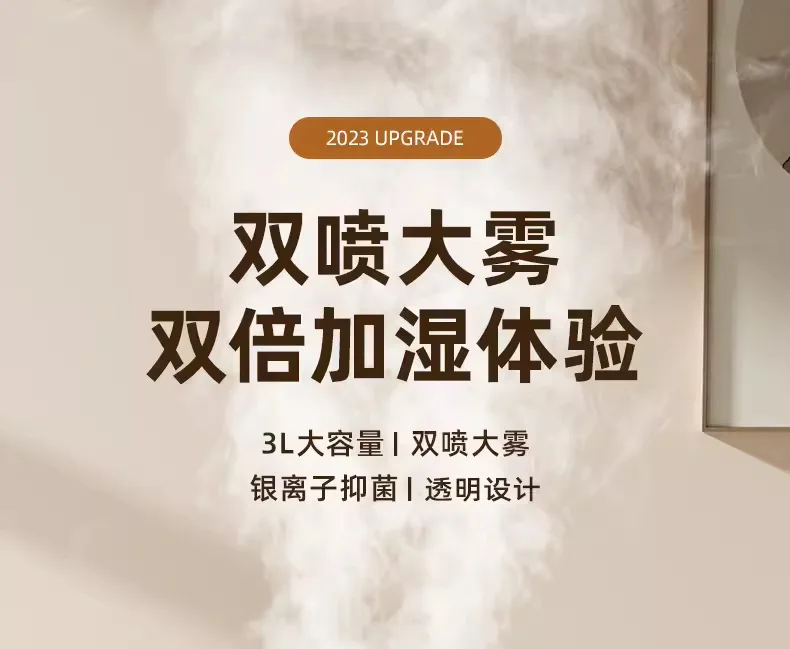 Luftfuktaren har två munstycken för dimutsläpp som ger effektiv fuktspridning och kraftig kall dimma, vilket snabbt fuktar även större utrymmen. -